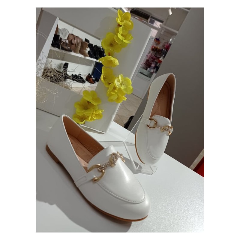 MOCASSINO DI SIMILPELLE ROSA E BIANCO CON APPLICAZIONI IN STRASS ,LINEA ELEGANTE CASUAL