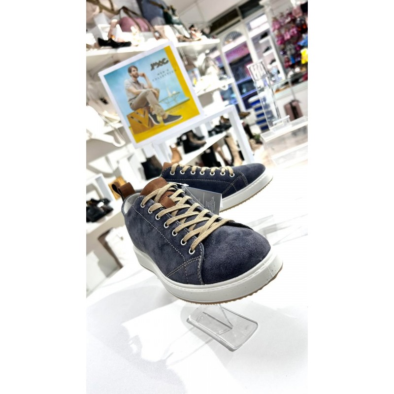 SCARPE DI NABUK BLU CON DETTAGLI CUOIO IDEM VERDE PLANTARE ESTRAIBILE IN PELLE ALLACCIATE FONDO BASSO IMAC MADE IN ITALY
