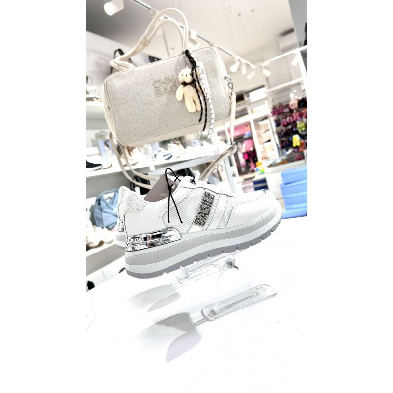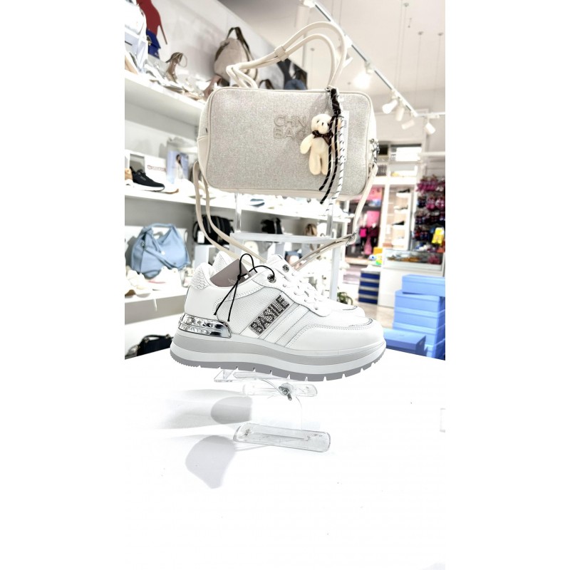 SCARPE DI TESSUTO BIANCHE E BIANCHE E BLU CON I LACCI ZEPPA MEDIA UNICA CON I LACCI FONDO IN GOMMA BY BASILE
