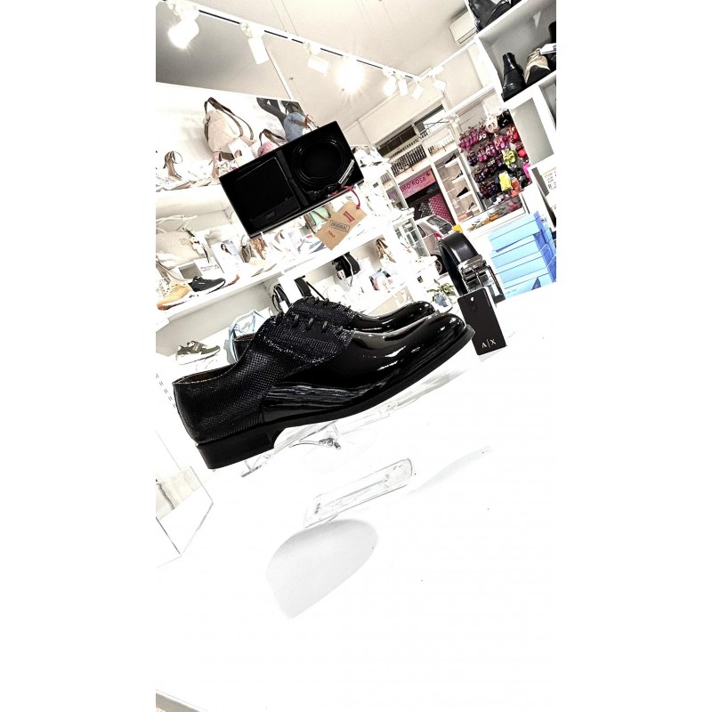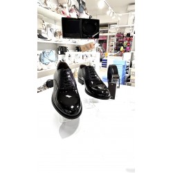 SCARPE DI VERNICE NERO CON I LACCI FONDO IN CUOIO MADE IN ITALY