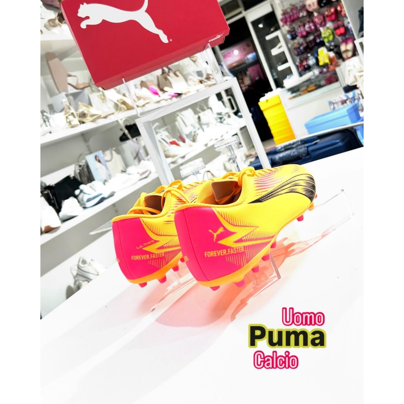 SCARPE DI PELLE ARANCIO CON RIPORTI FUXIA ALLACCIATE E CON TACCHI ALTI BY PUMA