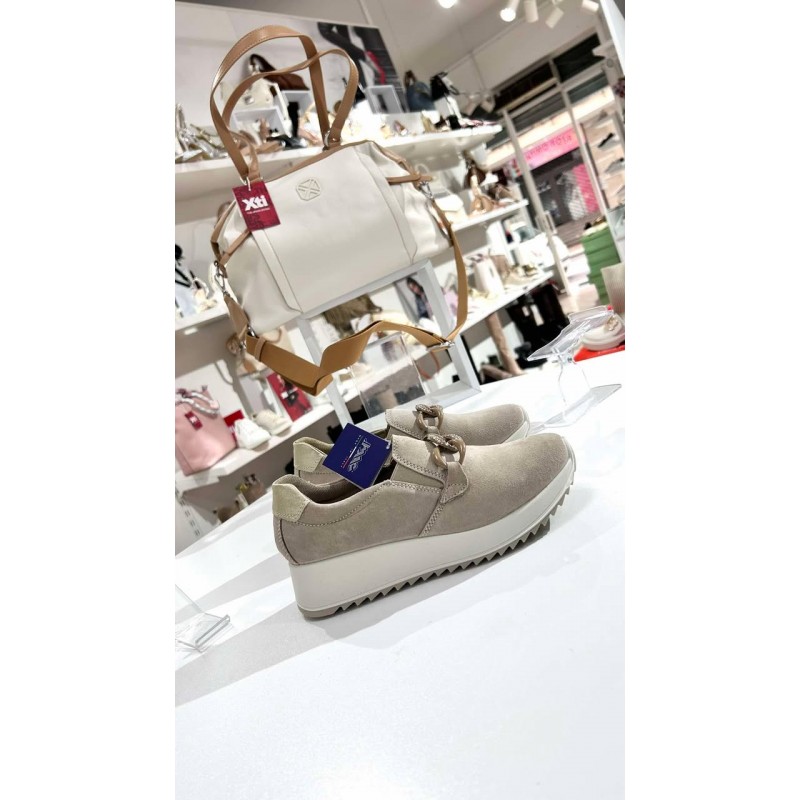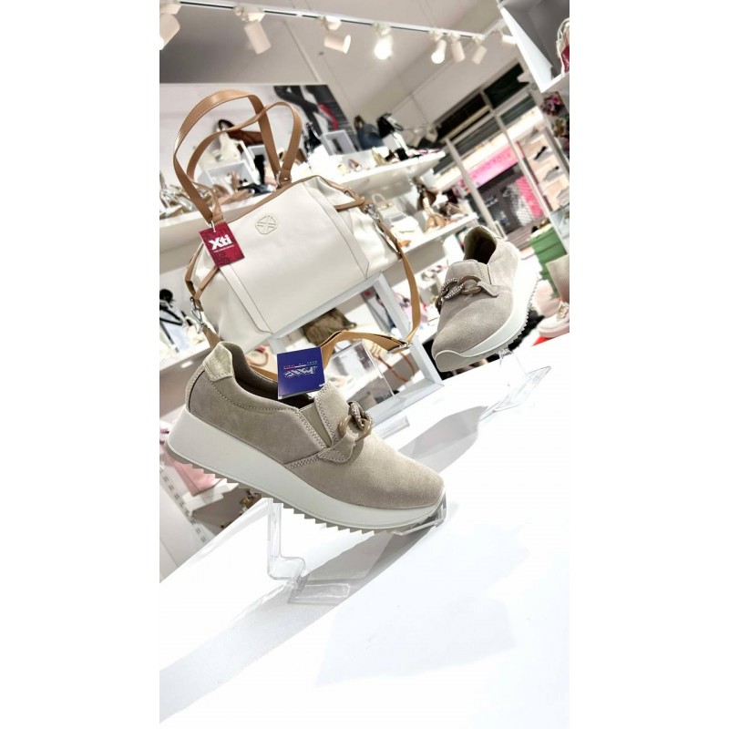 MOCASSINO DI NABUK BEIGE CON FIBBIA ORO ED ELASTICI LATERALI ZEPPA BASSA PLANTARE ESTRAIBILE FONDO IN GOMMA BY IMAC COMODISSIME