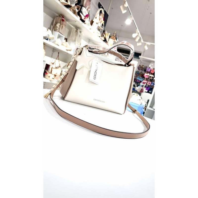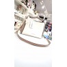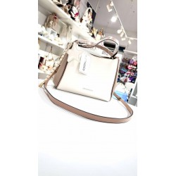 BORSA DI SIMILPELLE BICOLORE ROSA E BIANCA E BIANCA E BEIGE DI MEDIA GRANDEZZA CON DUE MANICI E TRACOLLA