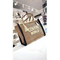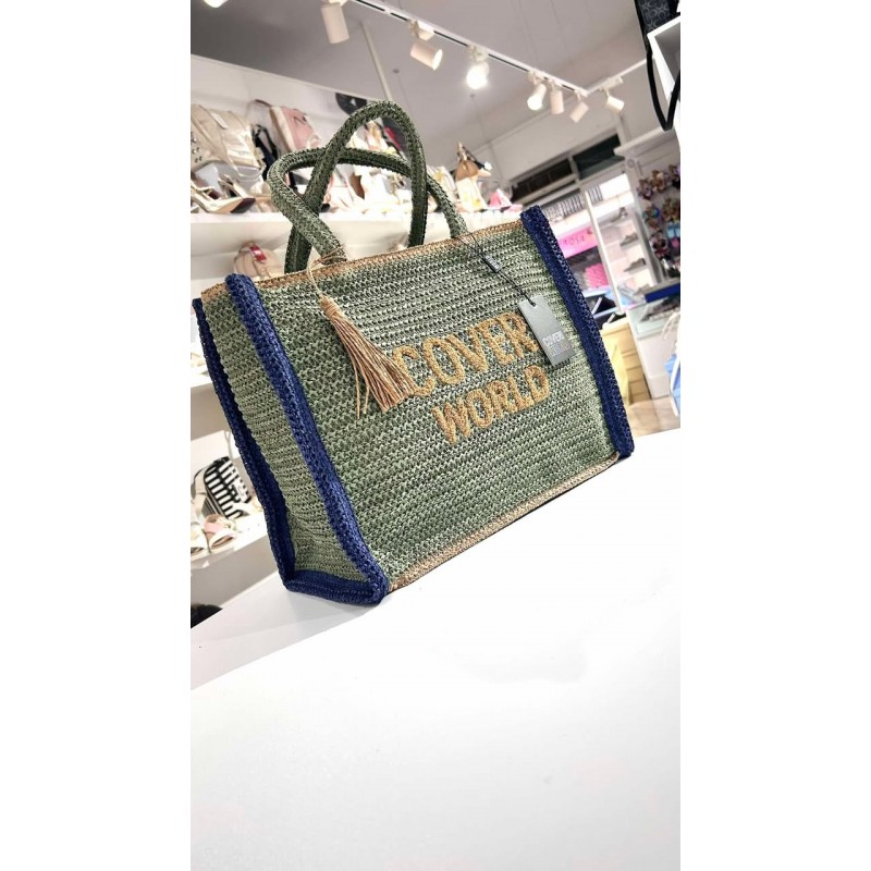 BORSA DI PAGLIA BEIGE CON DETTAGLI NERI E BLU CON DETTAGLI VERDE ADATTA ANCHE PER IL MARE